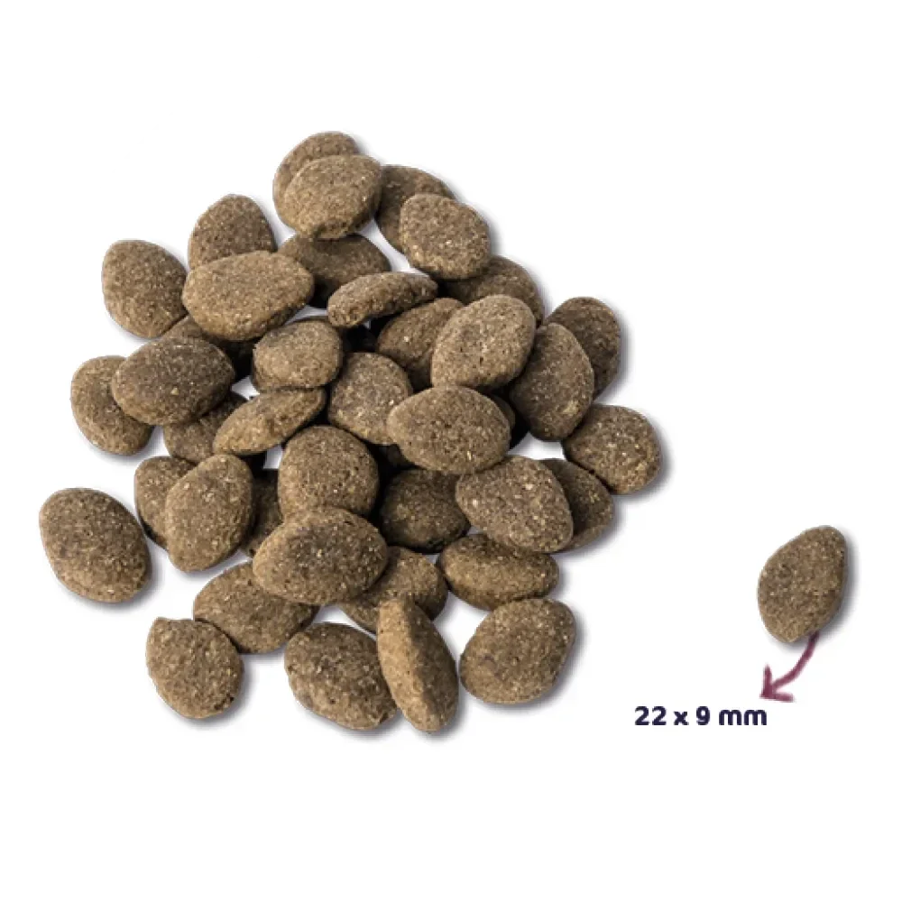 Analytische bestanddelen: Ruw eiwit 25%, ruw vet 14%, ruwe celstof 3,5%, ruwe as 9%, vocht 9%, omega-3 vetzuren (bron van EPA/DHA/LNA) 1,5%, omega- 6 vetzuren 2,7%, (ratio ?3/?6 = 1 / 1,8), calcium 1,8%, fosfor 1,2%.
