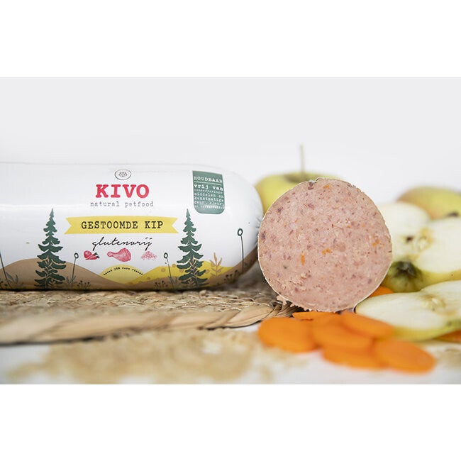 Een mooi begin van het ontbijt of diner van jouw trouwe vriend is deze rol met zacht gestoomd vlees. Hij bestaat enkel uit kippenvlees dus ook voor gevoelige beestjes is ‘ie geschikt. Door het toevoegen van een klein percentage wortel, appel en zilvervliesrijst toveren we ook wat extra vezels in de maaltijd. Met de smaak van kip zit je altijd wel goed, maar met de inhoud nu idem dito. Ideaal voor dagelijks gebruik, voor alle levensfases.