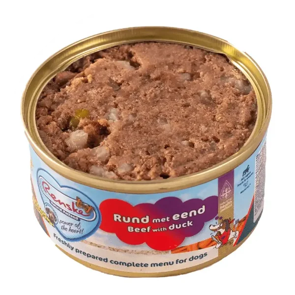 - Met 50% vers bereide rund met eend als hoofdingrediënt