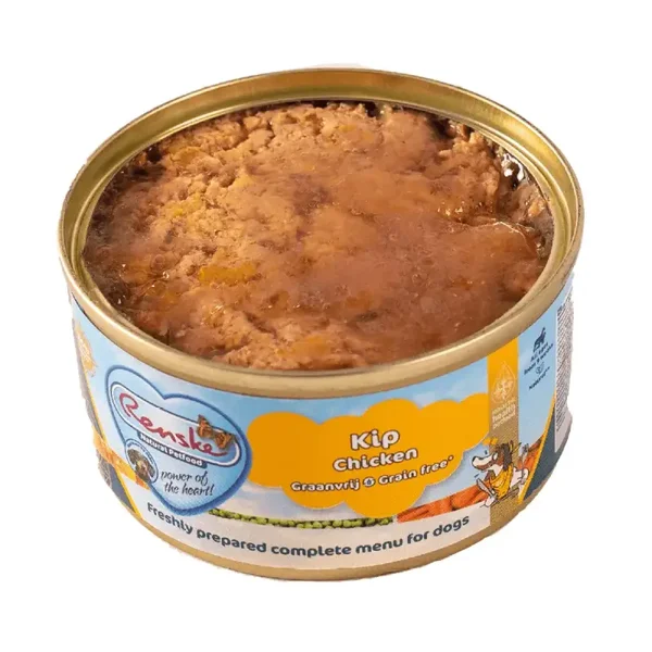 60% Vers bereide kip Renske Vers Bereide Vlees Maaltijd met kip is een complete, graanvrije maaltijd voor jonge en volwassen honden van alle rassen vanaf 9 weken. Het product bevat 60% vers bereide kip en is aangevuld met heerlijke groenten. Door de hoogwaardige ingrediënten zijn de maaltijden licht verteerbaar en goed voor moeilijke eters! In handige kleine porties verpakt, ook ideaal voor onderweg of op vakantie.