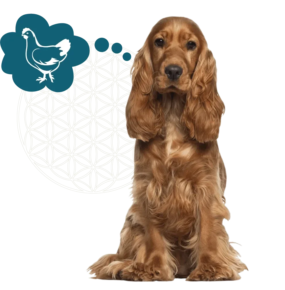 Biologisch gecertificeerde kip (vleugels, nek, lever, karkas) (68%), biologische boekweit, biologische kalkoen (vleugels, nek, karkas) (5%), biologische wortelen, biologisch lijnzaad (5%), biologische kruidenmix (brandnetel, rozenbottel, anijs, kamille, melisse, Echinacea) (1%), mineralen.