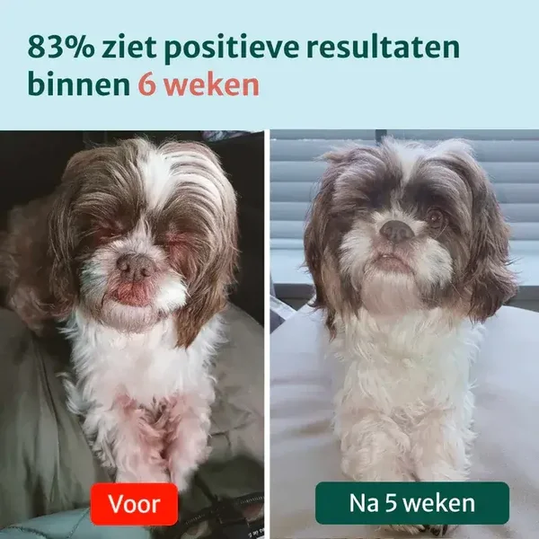 De veranderingen worden zichtbaar! De meeste hondenbaasjes geven aan dat ze na 3-4 weken verbetering zien, bij sommige duurt het iets langer tot 6-8 weken. Geef de supplementen voldoende tijd om grondig hun werk te doen, de eerste veranderingen gebeuren namelijk inwendig.