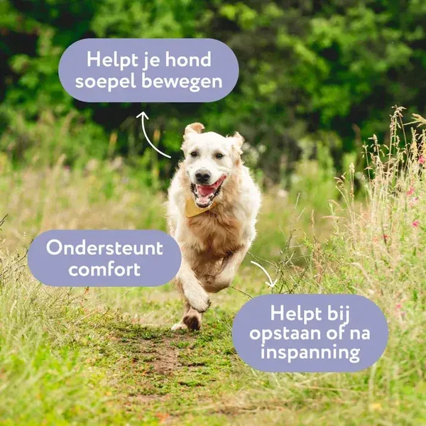 Bij veel honden – zeker naarmate ze ouder worden – kunnen gewrichten, botten en bindweefsel aan kracht en flexibiliteit verliezen. Dat komt door slijtage, een verminderde aanmaak van kraakbeen of ontstekingen in het bewegingsapparaat. Ook actieve honden kunnen hierdoor sneller last krijgen van stijfheid of overbelasting. Zonder ondersteuning kan dit ongemak toenemen en de levenskwaliteit beïnvloeden.