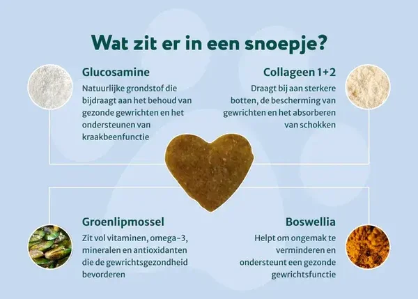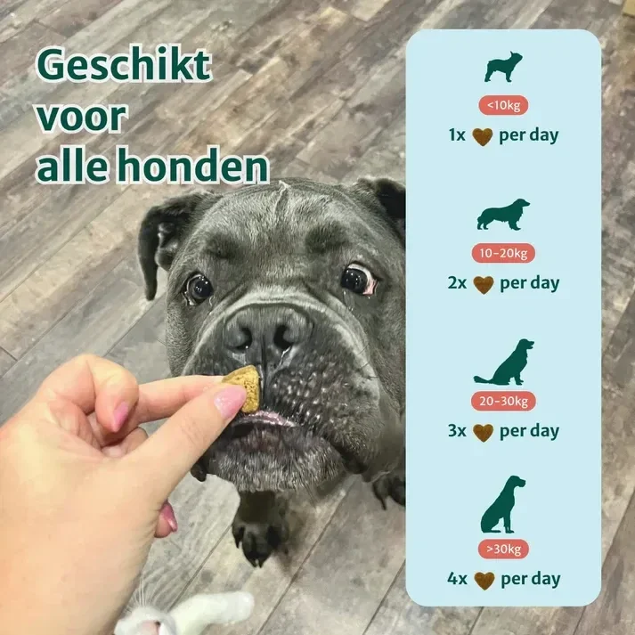 Deze signalen kunnen wijzen op ongemakken die de mobiliteit van je hond beïnvloeden. Om je hond te ondersteunen, bieden wij natuurlijke supplementen aan. Je kunt dit supplement preventief gebruiken of om de algemene gezondheid van je hond te ondersteunen, zodat hij zich comfortabeler voelt tijdens zijn dagelijkse activiteiten.