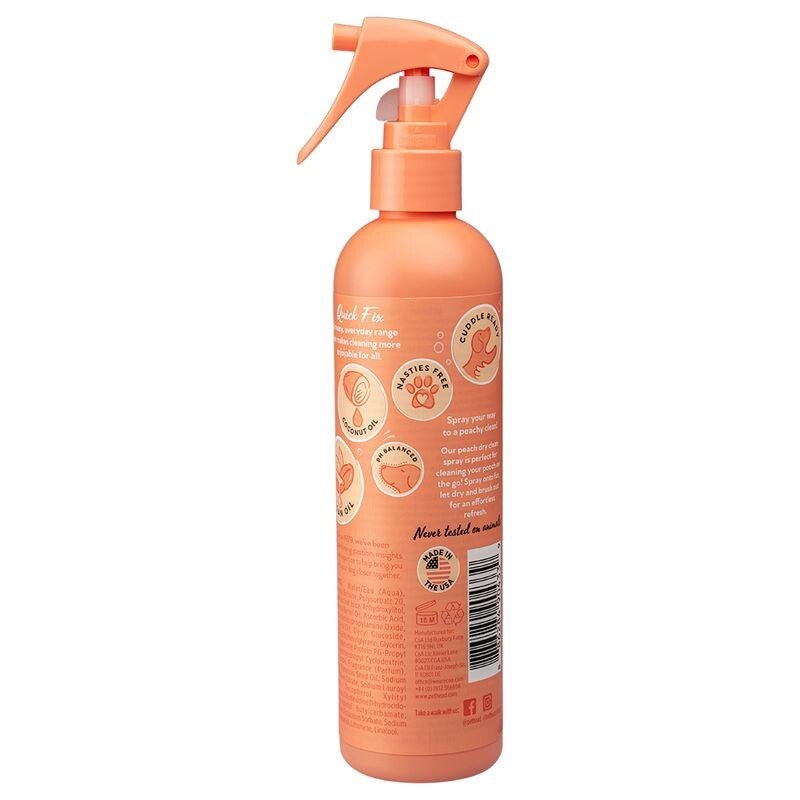 Onderweg even de haren van je hond wassen? Dat kan toch niet? Ja, dat kan wel! Met de Pet Head Quick Fix Spray ben je goed uitgerust om jouw hond zonder enige moeite een schone, goed verzorgde en fris ruikende vacht te geven. Het is een droogshampoo met een fruitige perzikgeur die gemakkelijk te sprayen is: perfect voor een snelle vachtreiniging tussendoor en op reis.