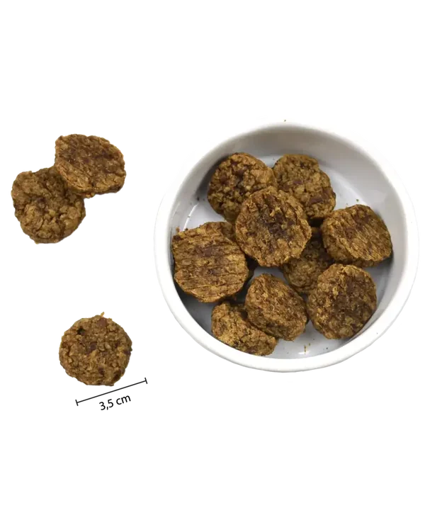 Deze snack is bedoeld voor beloning, niet gebruiken als complete voeding. Niet geschikt voor pups jonger dan 4 maanden. Gebruiken voor de op de verpakking vermelde datum. Droog, donker en koel bewaren. Na openen opnieuw sluiten.