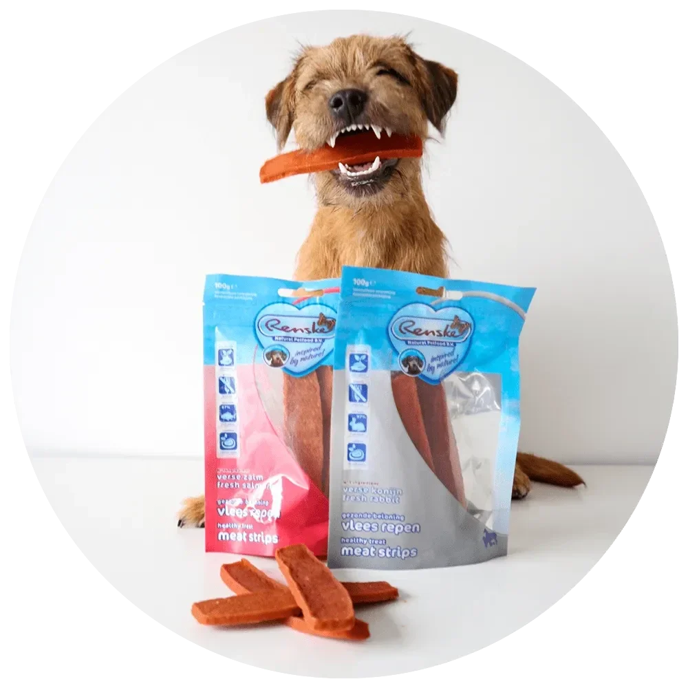 Dan zijn onze Vlees Repen iets voor jou! Deze heerlijke repen zijn gezond, lekker én goed voor het gebit. Door het gebruik van slechts één eiwitbron, zijn deze beloningen ook zeer geschikt bij allergische honden of in een eliminatiedieet. De smaken sluiten perfect aan bij de andere producten uit het Renske menu.