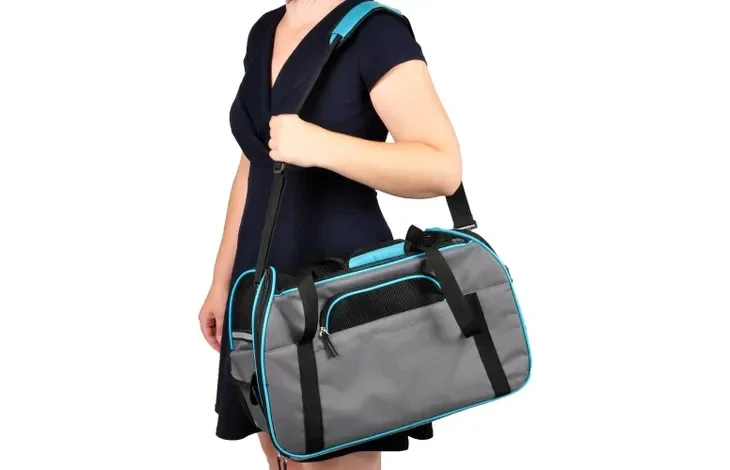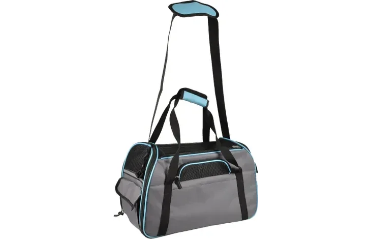 Neem je harige vriend overal mee naartoe met de Gisel draagtas! Gemaakt van duurzaam polyester en gevuld met schuim voor vormbehoud. Gemakkelijk schoon te maken en voorzien van reflecterende stroken en een kleine opening voor accessoires. Bevestig de tas aan een autogordel of trolley en geniet van de uitneembare bodem met wasbare hoes. Extra veiligheid wordt geboden door de riem met karabijnhaak. Draagriemen en een verstelbare schouderriem maken het dragen comfortabel.