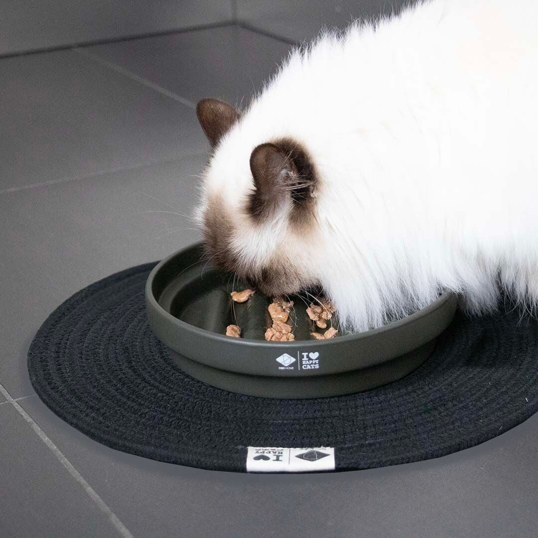 - Doet op een speelse manier trager eten en draagt bij tot het welzijn van de kat