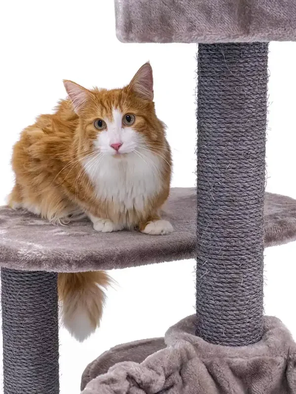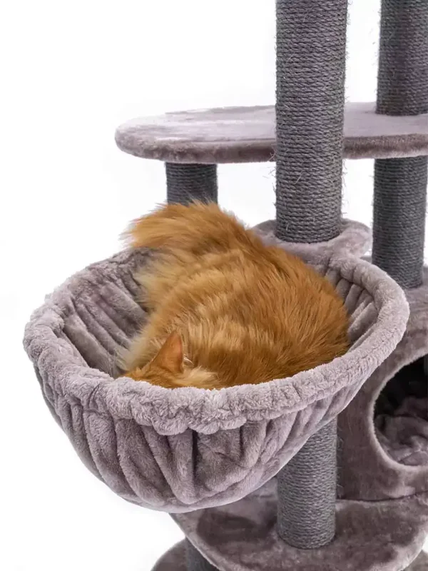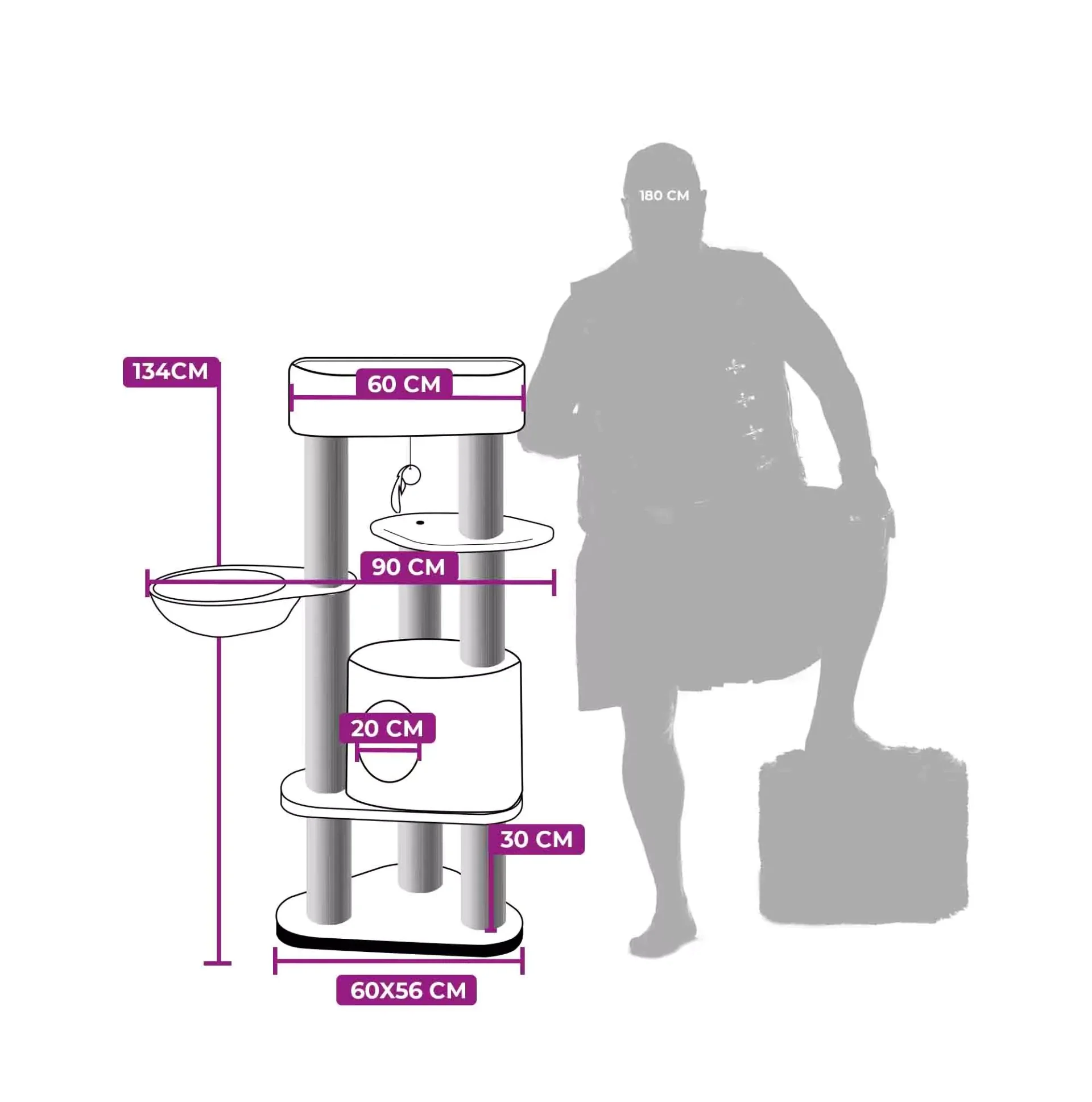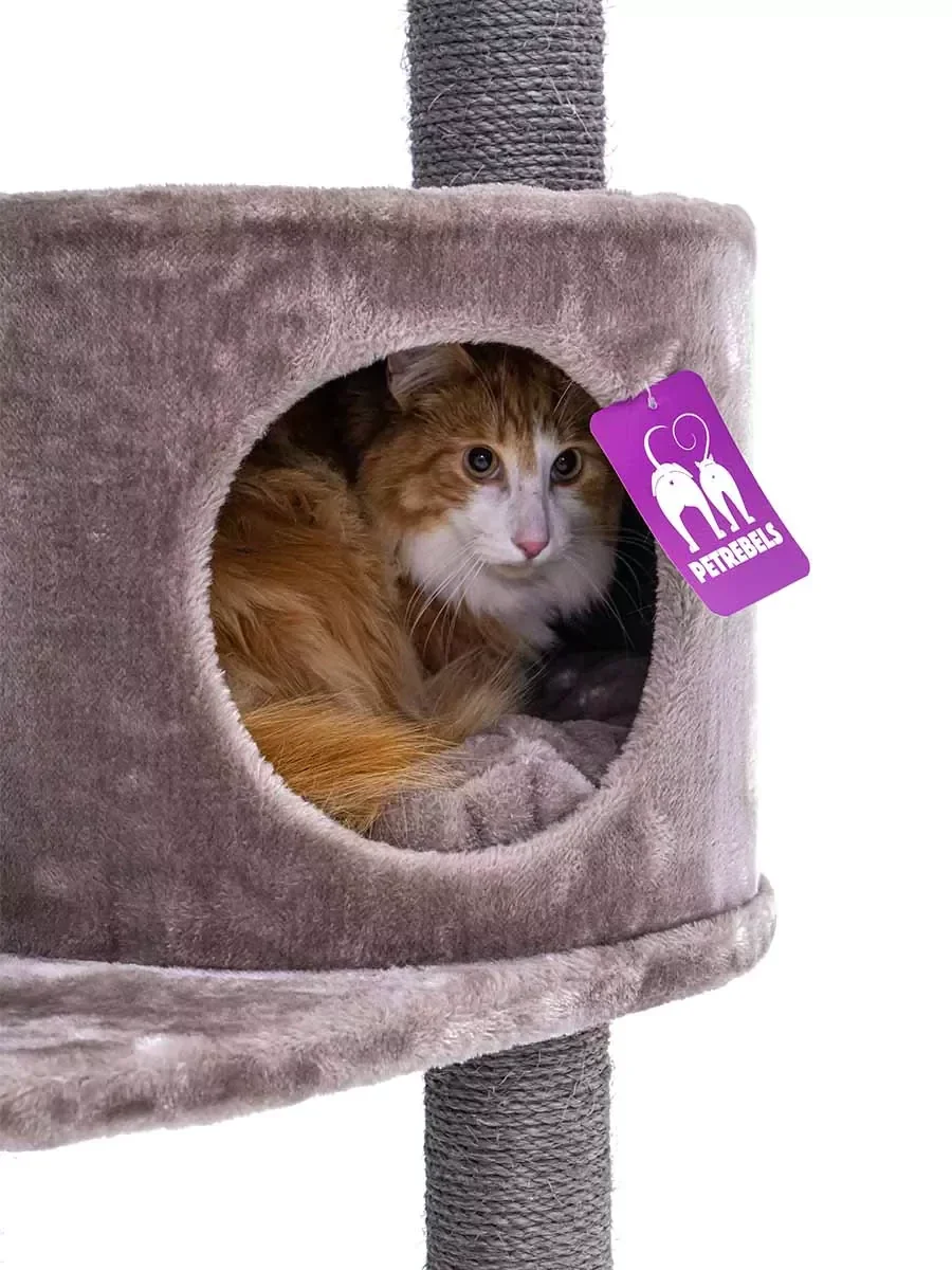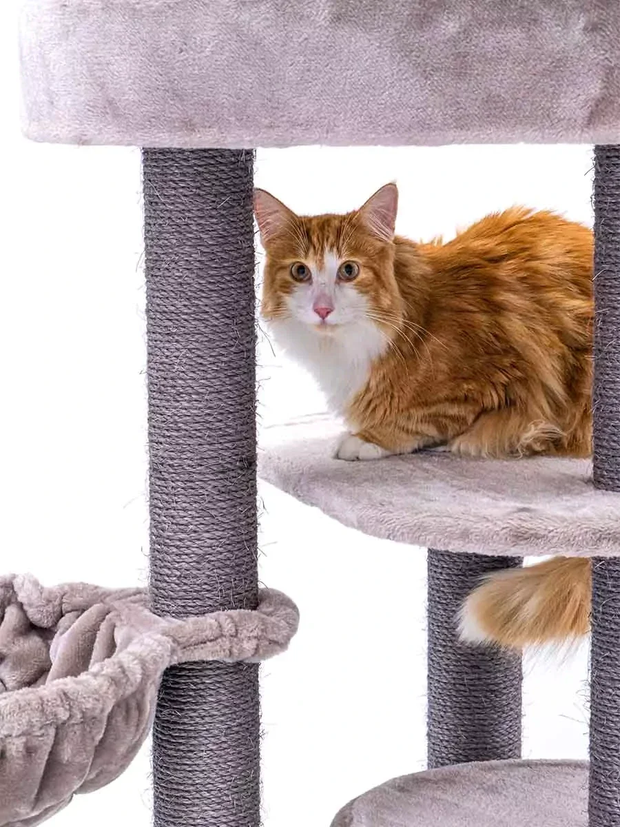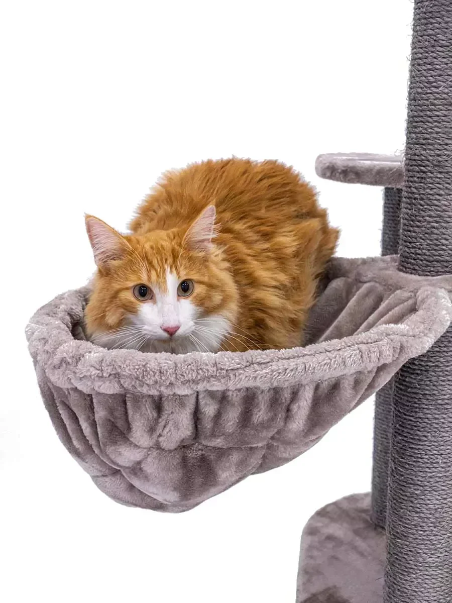 Dit compacte krabmeubel heeft werkelijk alles wat een echte Royal Rebel nodig heeft, zonder al te veel ruimte in beslag te nemen. Slapen, spelen, krabben en loeren, met de Charlotte 134 zitten jouw Rebels helemaal gebakken. Want met krabstammen van maar liefst 9 centimeter dik, een zacht slaapholletje, een heerlijke hangmat en een extra grote loungemand bovenin voorziet deze krabpaal in elke behoefte. En door de extra dikke bodemplaat staat dit toffe kattenmeubel als een huis.