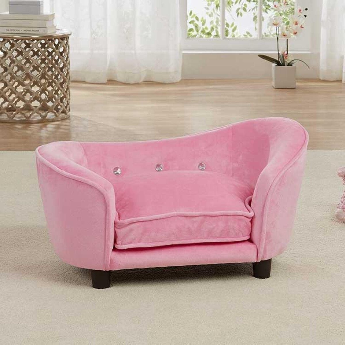 Hondenmand / sofa Snuggle RozeSpeciaal voor jouw hond of kat! Kruip lekker op deze fleurige, zachte sofa voor een heerlijk dutje. De sofa heeft een stevige constructie. De pootjes onder de sofa en de kleur geeft het geheel een luxe, zoete uitstraling.