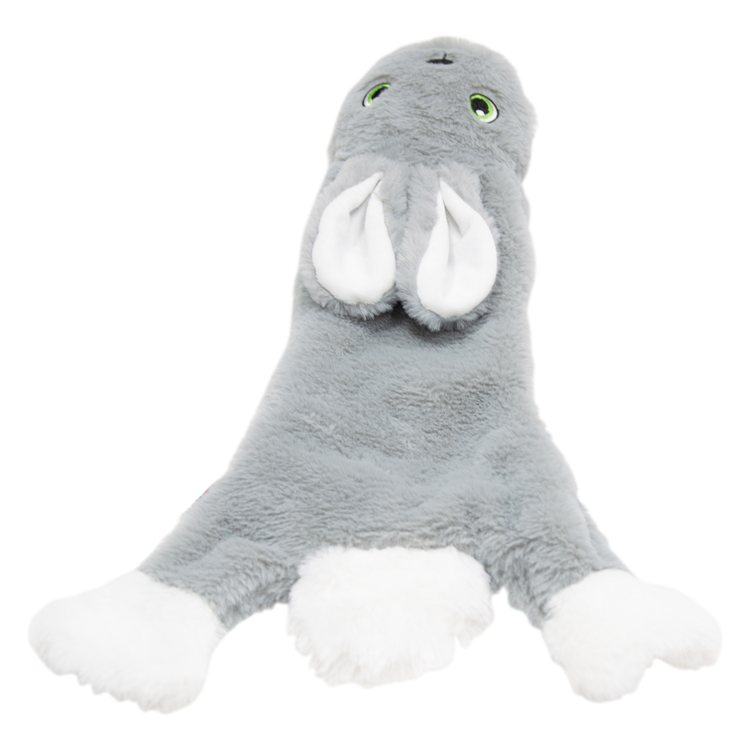 Het grijze knuffel-konijn uit de Flatties collectie biedt een knisperend geluid bij elke beet, wat honden geweldig vinden. Dit speeltje is verkrijgbaar in drie maten (S, M, L) en is gemaakt om zowel kleine als grote honden te vermaken. Het zachte, neutrale grijs maakt het ook nog eens een stijlvol speeltje voor in huis.