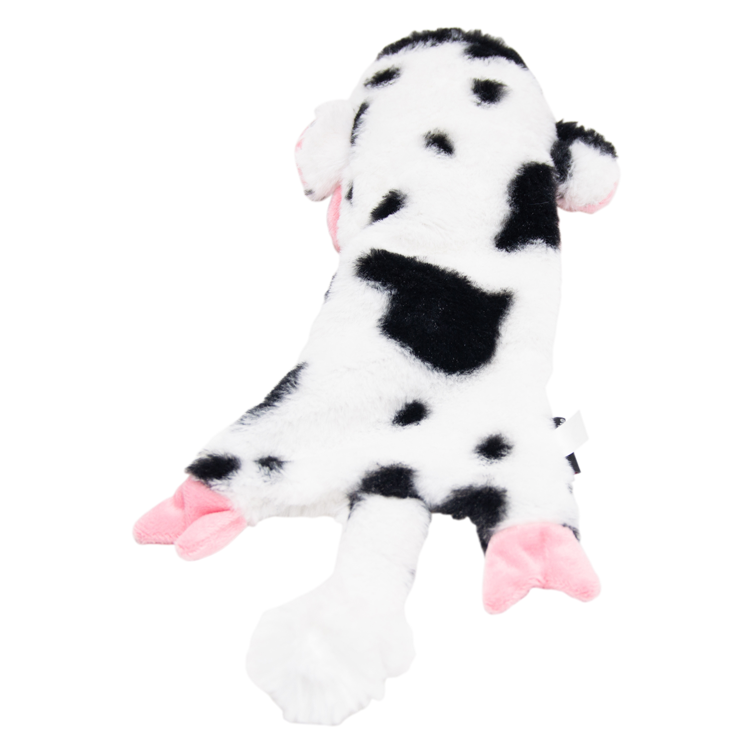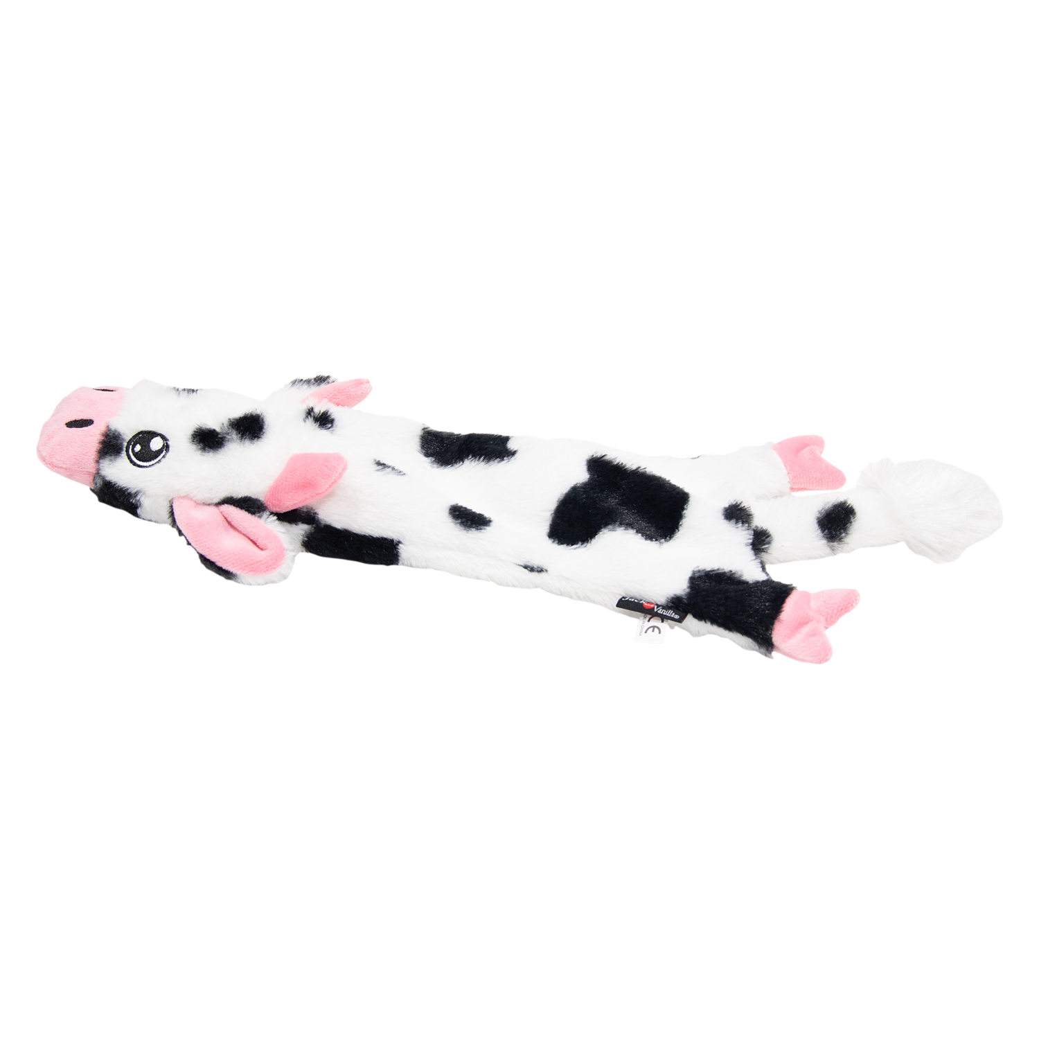 De zwart-witte koe uit de Flatties collectie heeft een leuke pieper die het speelplezier verhoogt. Dit knuffelbare speeltje is beschikbaar in drie maten (S, M, L) en maakt elk spelletje interactief. Perfect voor honden die graag spelen en piepende speeltjes heerlijk vinden!