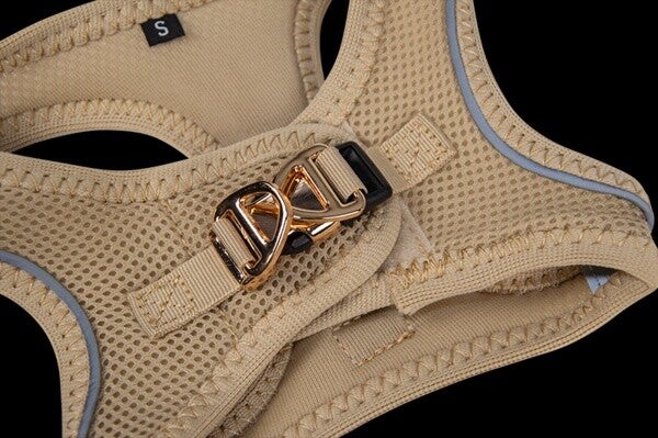 Afgewerkt met een gemakkelijk te gebruiken gouden sluiting, biedt dit harnas een veilige en comfortabele pasvorm voor elke hond. Het ademende, stijlvolle ontwerp betekent dat je hond in stijl kan wandelen zonder oververhit te raken - perfect voor avonturen in warm weer.