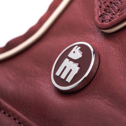 H Hermitage slabbetje van echt bordeauxrood en crèmekleurig leer XS