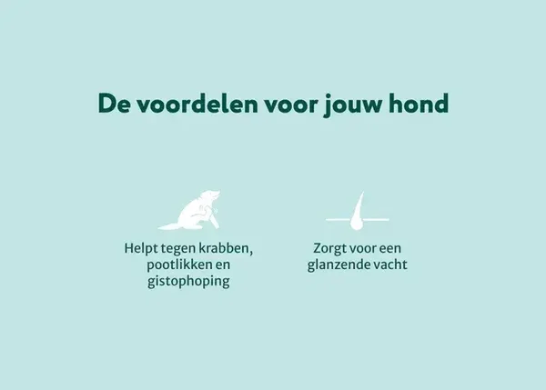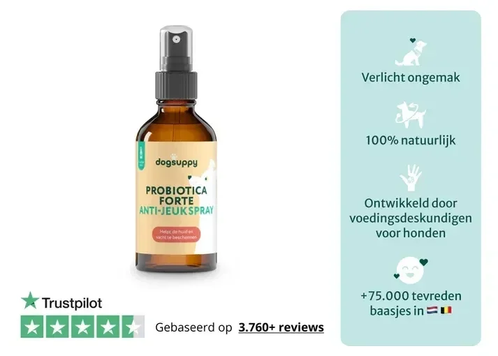 Deze anti-jeuk spray doe je NIET op de voeding van je hond, wel op de vacht waar de jeuk zich situeert.