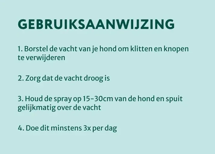 - Zorg ervoor dat de vacht droog is voordat je de spray aanbrengt.