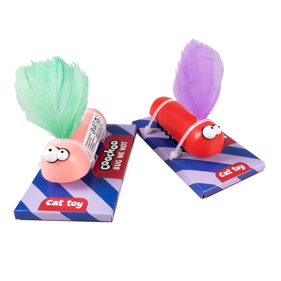 Too cute to squash! Bug Me Not is een vrolijk interactief kattenspeeltje in de vorm van een kleurrijk beestje. Door zijn draaiende beweging en felle veren trekt hij meteen de aandacht van je kat. De constante rotatie zorgt voor een onweerstaanbare uitdaging. Het prikkelt het jachtinstinct van je kat en zorgt voor actie, energie en eindeloos plezier. Ideaal om je kat fit te houden!